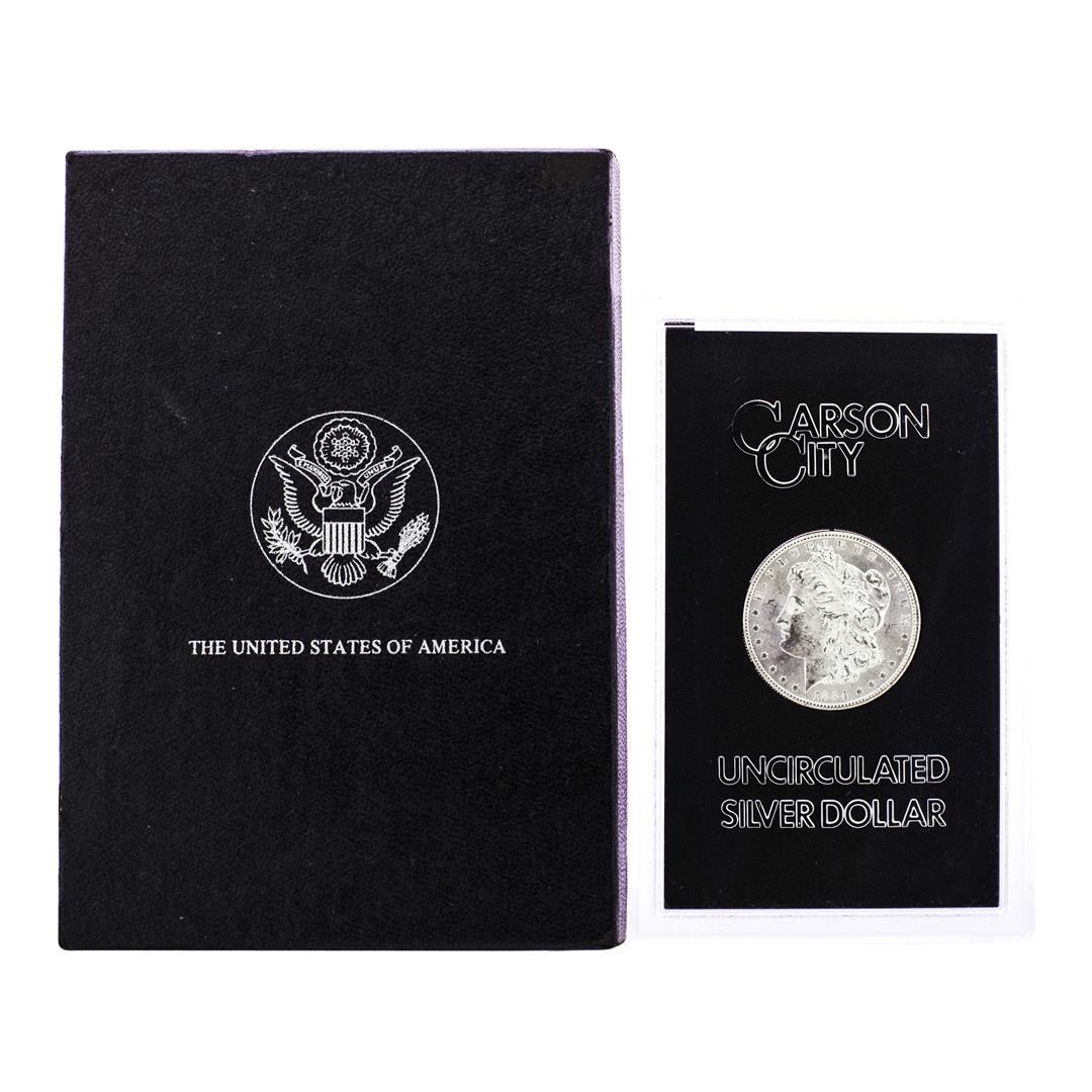 One 1884-CC $1 Morgan Silver Dollar Coin GSA Hoard Uncirculated with Box & COA.