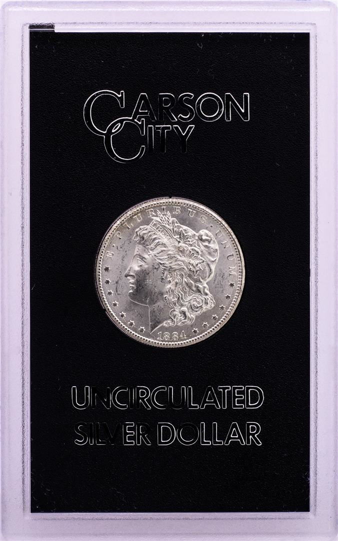 One 1884-CC $1 Morgan Silver Dollar Coin GSA Hoard Uncirculated with Box & COA.