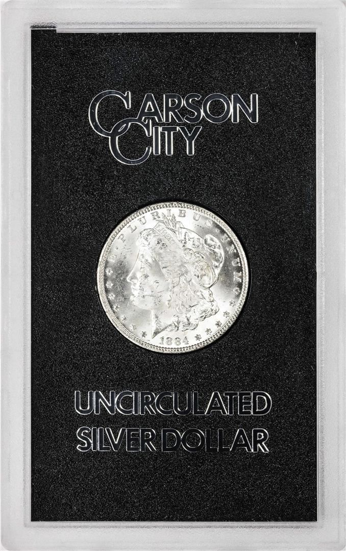 One 1884-CC $1 Morgan Silver Dollar Coin GSA Hoard Uncirculated.