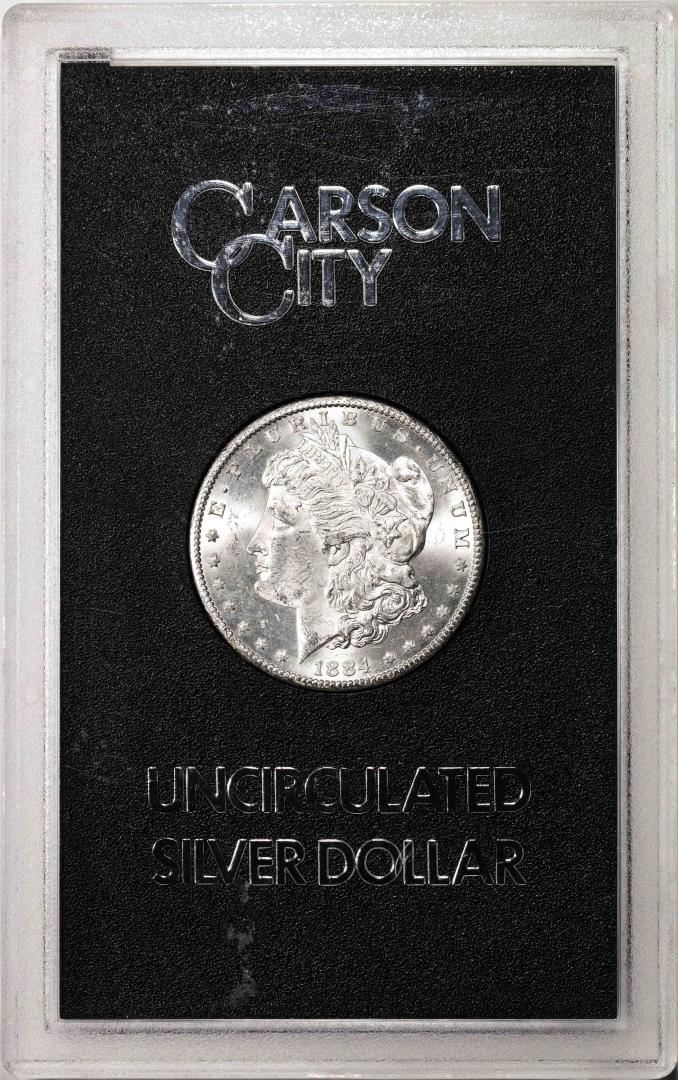 One 1884-CC $1 Morgan Silver Dollar Coin GSA Hoard Uncirculated.