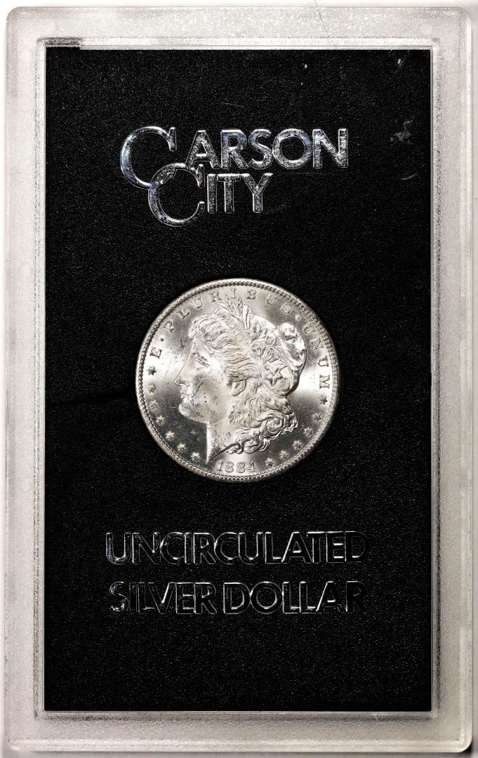 One 1884-CC $1 Morgan Silver Dollar Coin GSA Hoard Uncirculated.