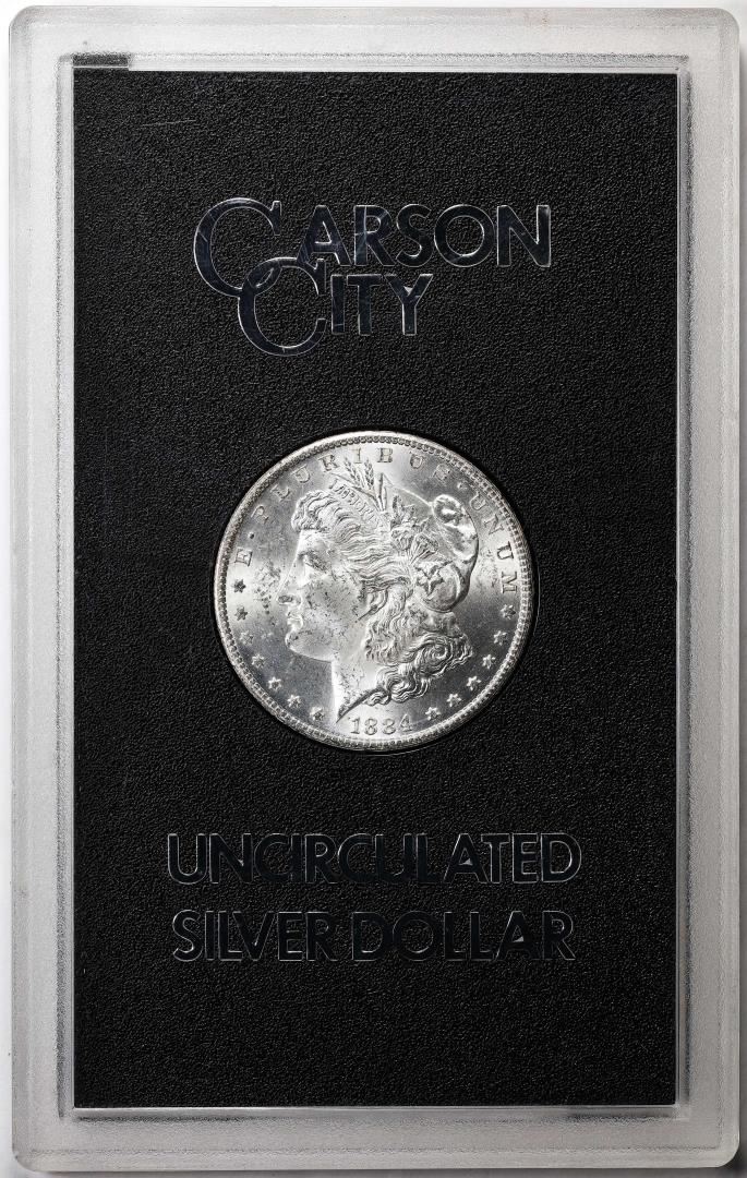 One 1884-CC $1 Morgan Silver Dollar Coin GSA Hoard Uncirculated.