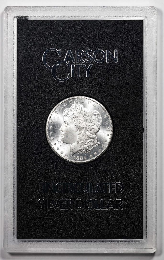One 1884-CC $1 Morgan Silver Dollar Coin GSA Hoard Uncirculated.