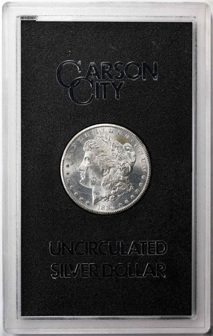 One 1884-CC $1 Morgan Silver Dollar Coin GSA Hoard Uncirculated.