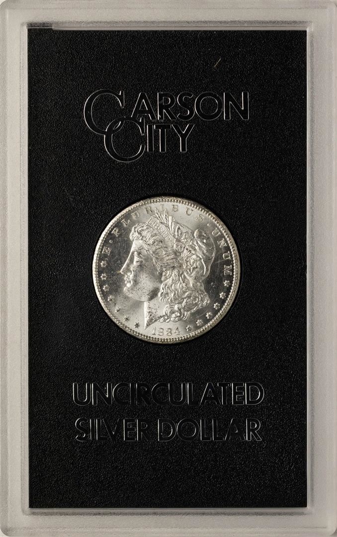 One 1884-CC $1 Morgan Silver Dollar Coin GSA Uncirculated.