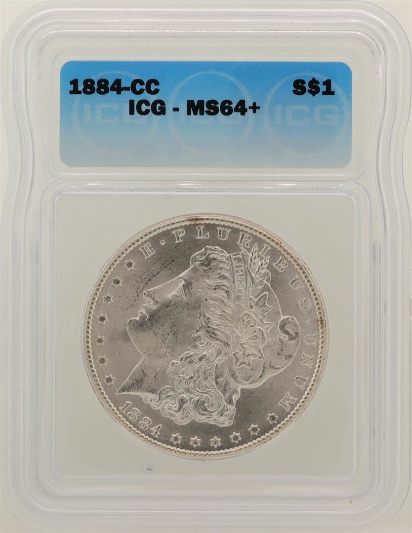 One 1884-CC $1 Morgan Silver Dollar Coin ICG MS64+. ICG Certified.