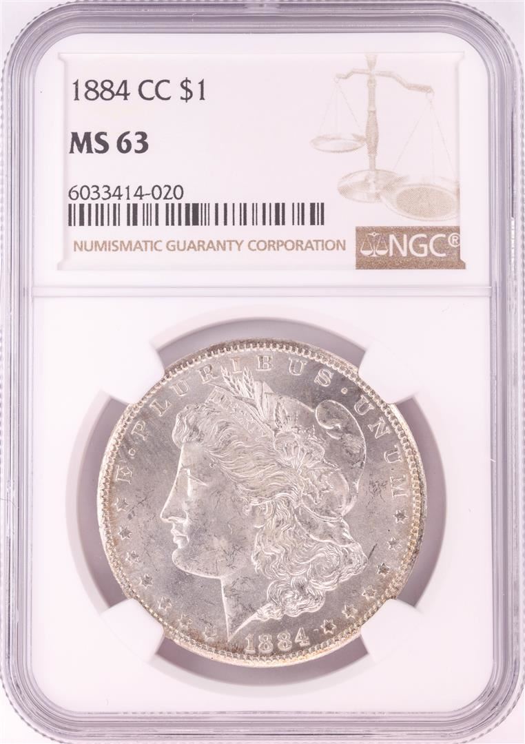 One 1884-CC $1 Morgan Silver Dollar Coin NGC MS63. NGC Certified.