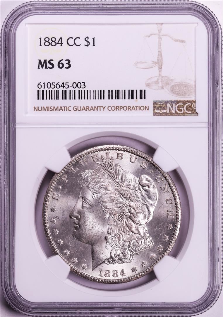 One 1884-CC $1 Morgan Silver Dollar Coin NGC MS63. NGC Certified.