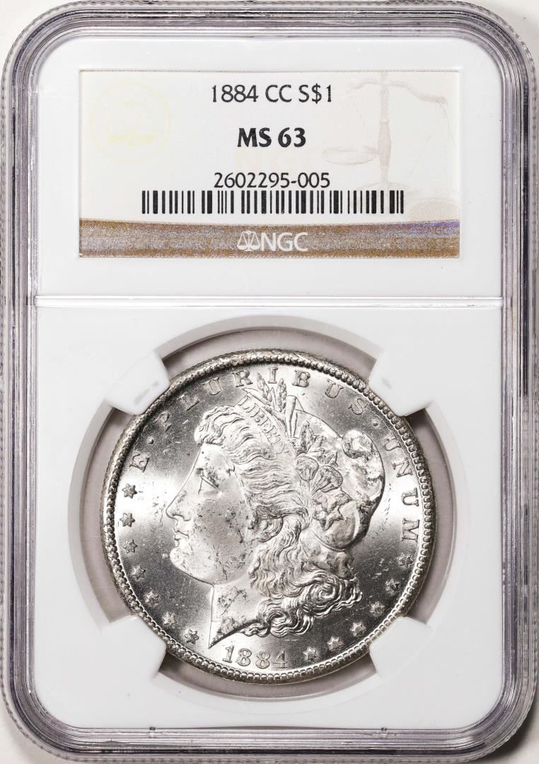One 1884-CC $1 Morgan Silver Dollar Coin NGC MS63. NGC Certified.