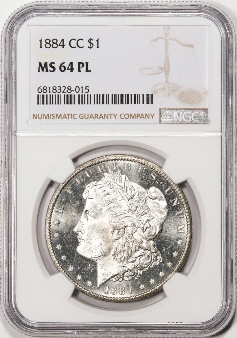 One 1884-CC $1 Morgan Silver Dollar Coin NGC MS64PL. NGC Certified.