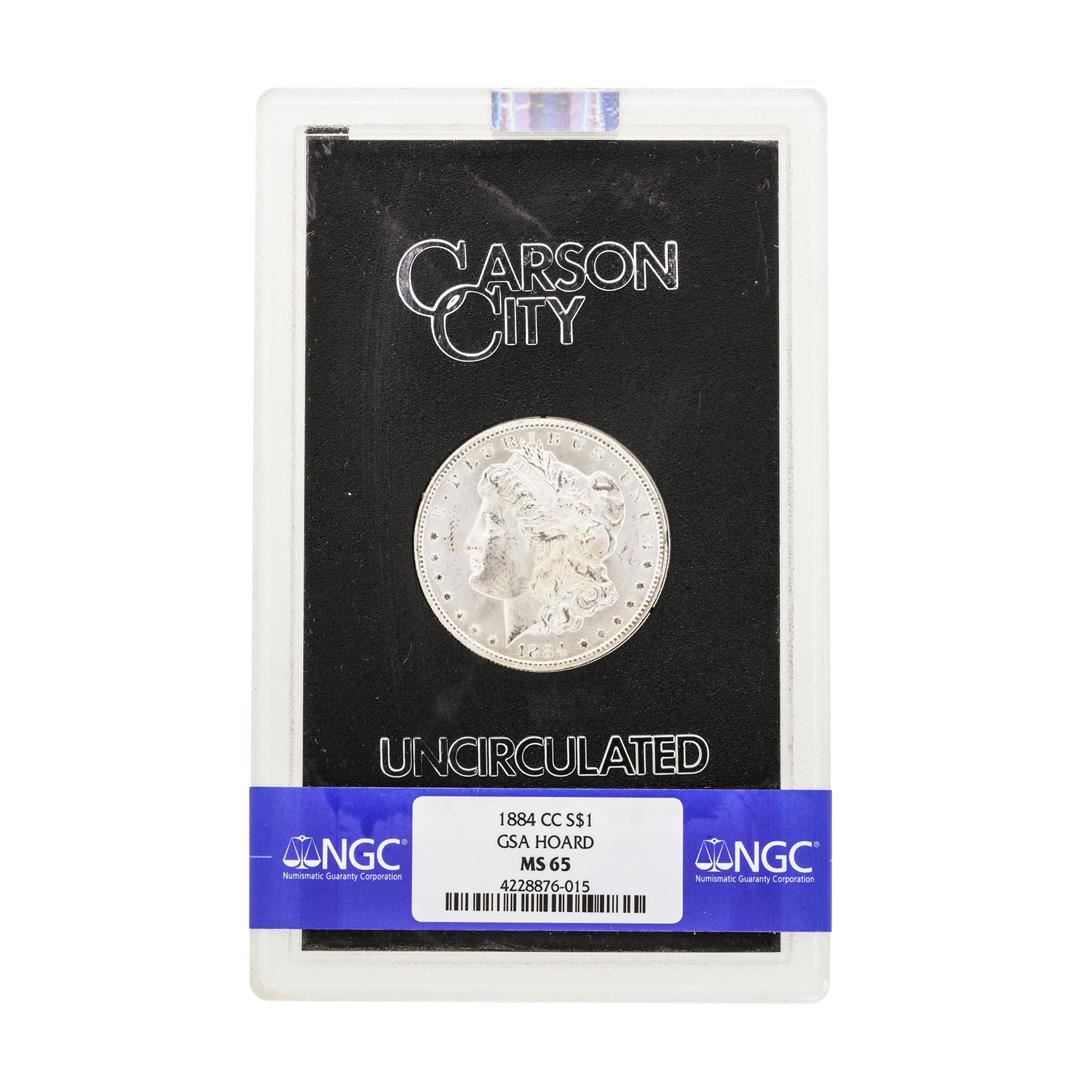 One 1884-CC $1 Morgan Silver Dollar Coin NGC MS65 GSA. NGC Certified.