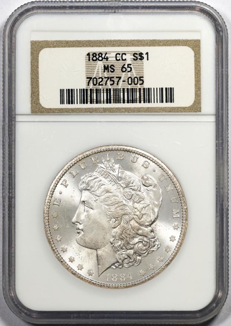 One 1884-CC $1 Morgan Silver Dollar Coin NGC MS65. NGC Certified.