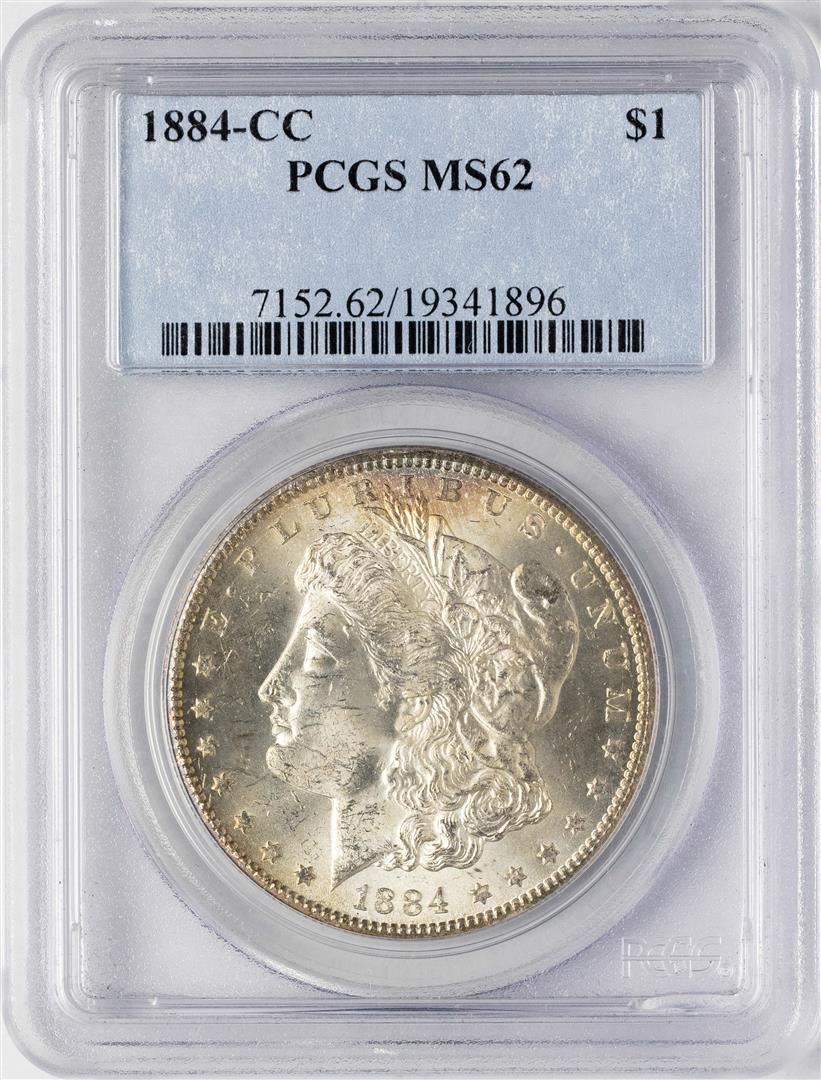 One 1884-CC $1 Morgan Silver Dollar Coin PCGS MS62. PCGS Graded.