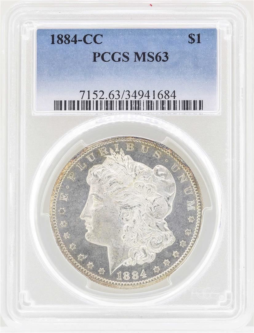 One 1884-CC $1 Morgan Silver Dollar Coin PCGS MS63. PCGS Graded.