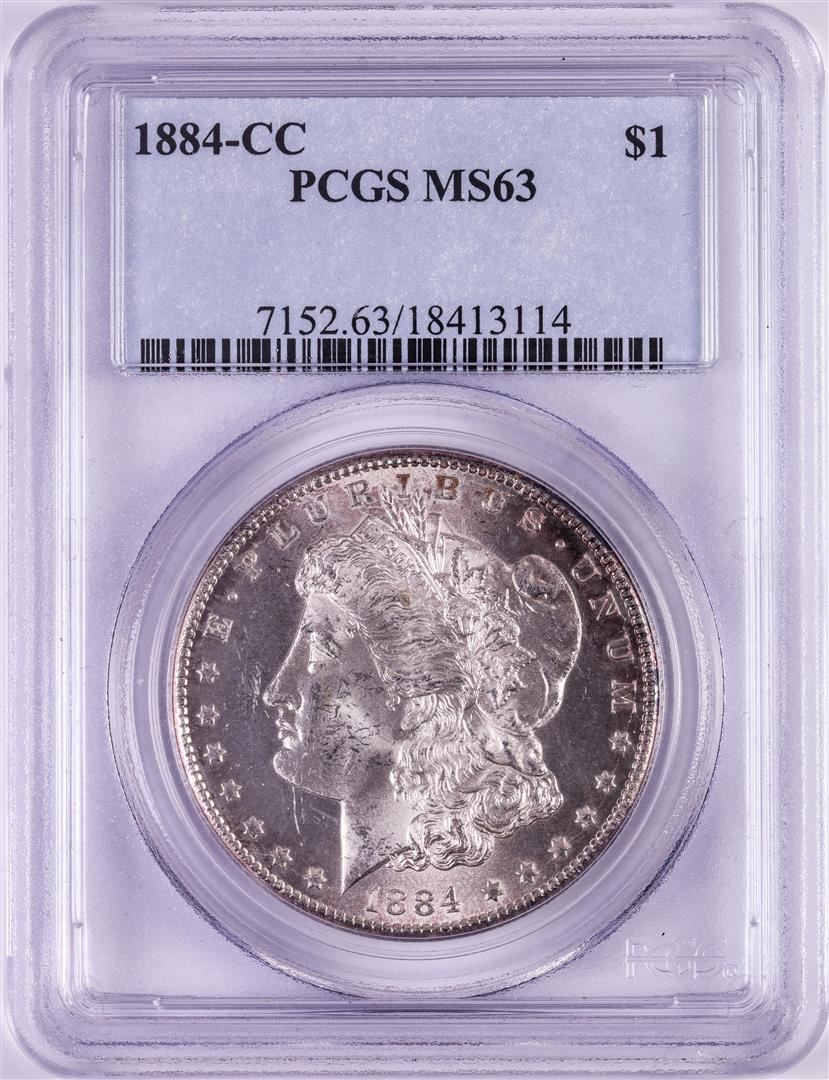 One 1884-CC $1 Morgan Silver Dollar Coin PCGS MS63. PCGS Graded.