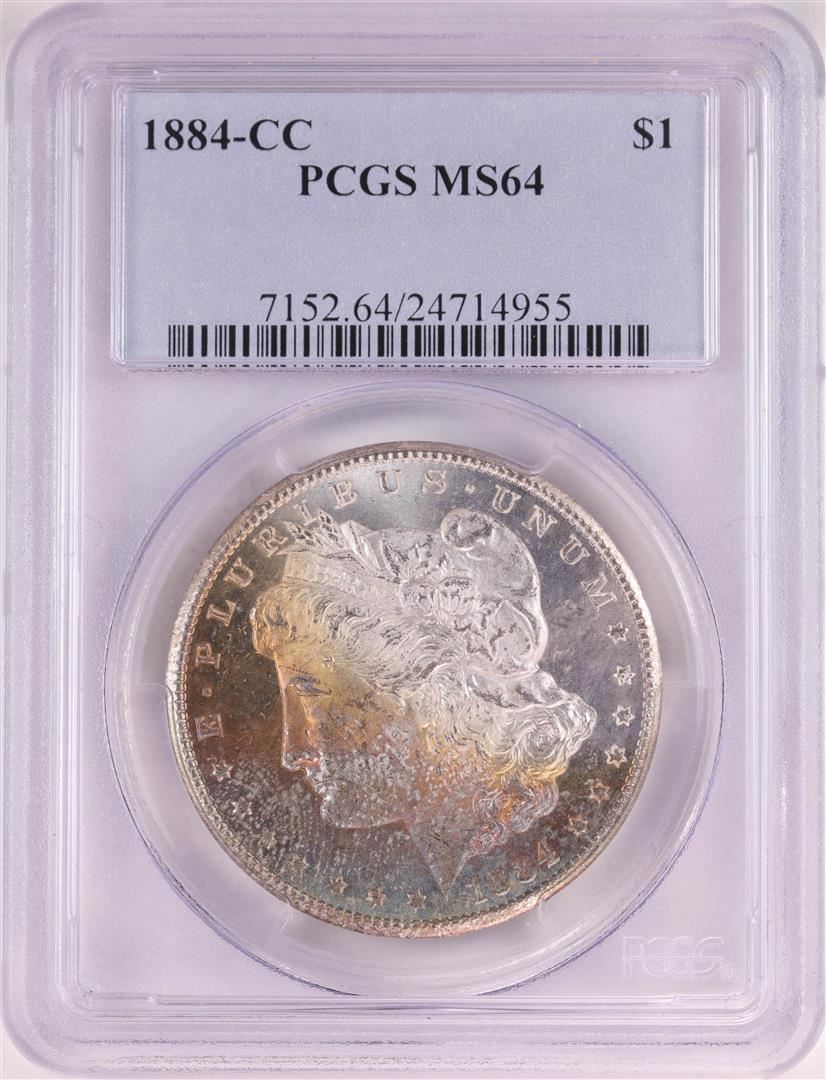One 1884-CC $1 Morgan Silver Dollar Coin PCGS MS64 Amazing Toning. PCGS Graded.