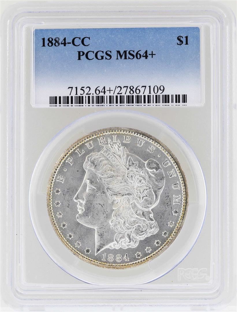 One 1884-CC $1 Morgan Silver Dollar Coin PCGS MS64+. PCGS Graded.