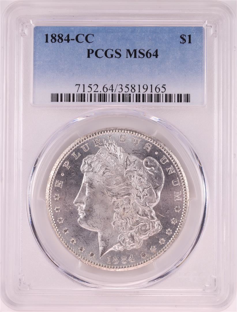 One 1884-CC $1 Morgan Silver Dollar Coin PCGS MS64. PCGS Graded.