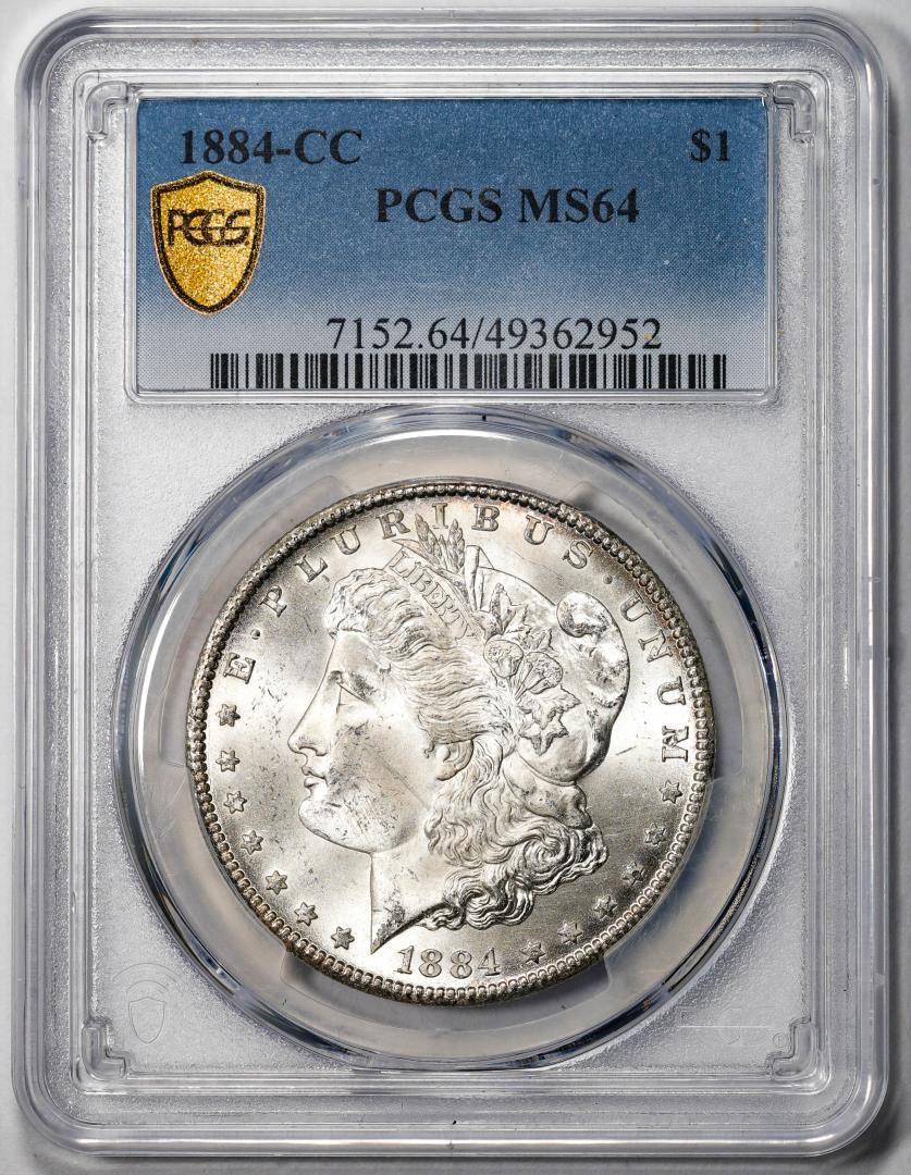 One 1884-CC $1 Morgan Silver Dollar Coin PCGS MS64. PCGS Graded.
