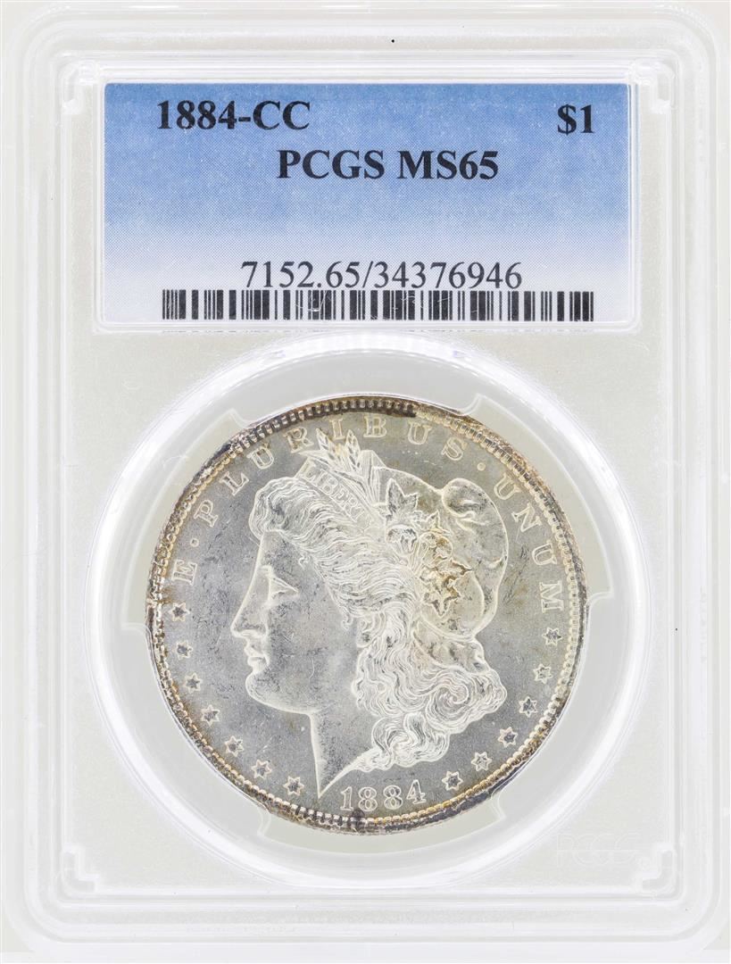One 1884-CC $1 Morgan Silver Dollar Coin PCGS MS65. PCGS Graded.