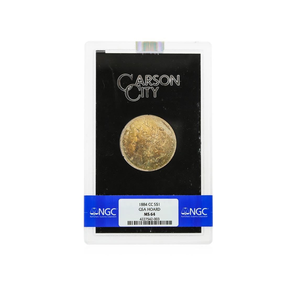 One 1884-CC $1 Morgan Silver Dollar GSA Hoard NGC Graded MS64. NGC Certified.