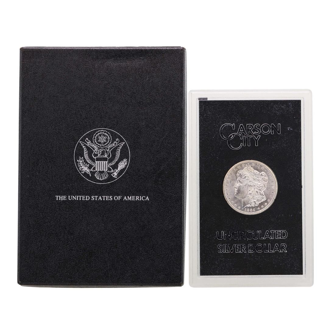 One 1884-CC $1 Morgan Silver Dollar Uncirculated Coin w/ Box GSA.