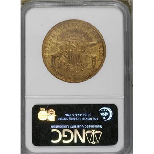 <B>1884-CC $20 AU50 NGC.</B></I> Luminous, dusky orange-gold surfaces host lightly worn, well-defined devices that show small, scattered marks consistent with a short time in circulation. Excellent eye appeal for the grade assigned and an attractive example of this popular Carson City issue.<BR><BR><B>Coin Engraver:</B> James B. Longacre<BR><BR><b>Shipping:</b> Coins & Currency (<a target="_blank" href="http://www.heritageauctions.com/common/shipping.php">view shipping information</a>)