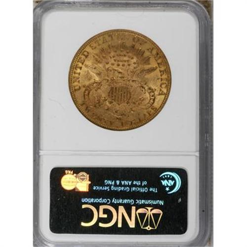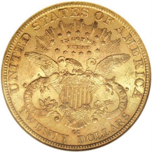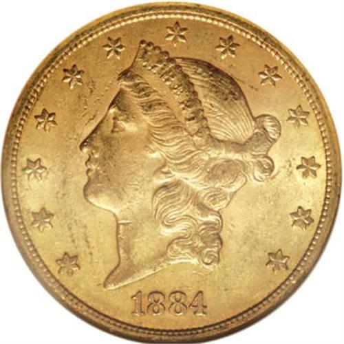 <B>1884-CC $20 AU58 NGC.</B></I> An original Borderline Uncirculated example with nearly complete mint luster. The obverse field has its share of moderate marks, but the portrait and the reverse are unexpectedly smooth. The '90-CC is the most available Carson City twenty in the AU58 grade, yet the '84-CC trades for close to the same price.<BR><BR><B>Coin Engraver:</B> James B. Longacre<BR><BR><b>Shipping:</b> Coins & Currency (<a target="_blank" href="http://www.heritageauctions.com/common/shipping.php">view shipping information</a>)
