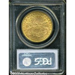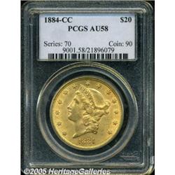 <B>1884-CC $20 AU58 PCGS.</B></I> The reverse on its own likely merits a Mint State assessment, although faint friction on the cheek keeps this piece from a finer grade. The eye appeal is substantial since noticeable marks are few in quantity.