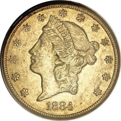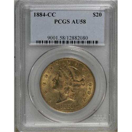 <B>1884-CC $20 AU58 PCGS.</B></I> This near-Mint Carson City representative retains a considerable amount of luster on its honey-gold surfaces tinted with hints of tan. An exacting strike imparts strong definition to the design elements, including Liberty's hair, the star centers, and the eagle's plumage. A few minor marks are not disturbing.<BR><BR><B>Coin Engraver:</B> James B. Longacre<BR><BR><b>Shipping:</b> Coins & Currency (<a target="_blank" href="http://www.heritageauctions.com/common/shipping.php">view shipping information</a>)