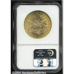 <B>1884-CC<$20> MS61 NGC.</B></I> This Carson City double eagle reveals apricot patina over pleasing lustrous surfaces. The design elements show nice design detail throughout, with most of the hairlines in Liberty's hair evident. Several light ticks are scattered over both sides, but none are individually serious. <BR><BR><B>Important notice:</B> Heritage usually auctions material at the rate of 200-250 lots per hour. On some occasions eBay Live bid software or the Internet may not be able to keep up with the pace of the auction. We recommend placing a realistic absentee bid now as insurance to avoid disappointment. Occasionally the auctioneer may eliminate or reject an eBay Live bid, and the auctioneer may also reopen a lot after the close of the eBay live bidding (usually because we missed an audience bid), and may reject your bid even if it shows you as the winning bidder. By bidding via eBay Live, you agree that Heritage may award the lot to another bidder at its sole discretion under the circumstances described above or any other reasonable circumstances. Since eBay bids are not shown to us until we open the lot on the floor, we treat those bids just like floor bids. In most cases the floor responds before the eBay bid is presented to us, due to Internet lag time, so for consistency we have made it a policy that floor bids are always considered first over tie eBay live bids. Also please note that all Heritage lots purchased through eBay Live carry a 20% Buyer's Premium. Please make sure you read the Terms and Conditions before you bid.