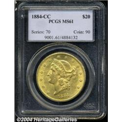 <table><tbody><tr><td><table> <TR><TD width="100%"><TABLE cellSpacing=1 cellPadding=3 width="100%" border=0><TBODY><TR><TD width="100%" bgColor=#79735c><FONT face=arial color=#ffffff size=3><B>Description</B> </FONT></TD></TR><TR><TD width="100%" bgColor=#ffffff><FONT face=arial size=2><B>1884-CC $20 MS61 PCGS.</B></I> Boldly struck and highly lustrous, with bright orange-gold color and a very scuffy appearance on the obverse. Population: 39 in 61, 26 finer (10/03).<BR><I>From a Magnificent Collection of Double Eagles.</B></I> </FONT></TD></TR></TBODY></TABLE></TD></TR></TBODY></TABLE><BR><A name=PricesRealized></A><TABLE cellSpacing=0 cellPadding=0 width="100%" bgColor=#000000 border=0><TBODY><TR><TD width="100%"><TABLE cellSpacing=1 cellPadding=3 width="100%" border=0><TBODY><TR><TD width="100%" bgColor=#79735c><A name=PR><FONT face=arial color=#ffffff size=3><B>Previous Prices from Heritage Auctions</B> </FONT></A></TD></TR><TR><TD bgColor=#f6f6ed><TABLE cellSpacing=0 cellPadding=0 width="100%" border=1><TBODY><TR><TD align=middle width="33%"><B>Date</B></TD><TD align=middle width="33%"><B>Service</B></TD><TD align=middle width="33%"><B>Price</B></TD></TR><TR bgColor=whitesmoke><TD width="33%"><B>10/07/2003</B></TD><TD width="33%">PCGS</TD><TD width="33%">$2,990.00</TD></TR><TR bgColor=whitesmoke><TD width="33%"><B>11/26/2002</B></TD><TD width="33%">NGC</TD><TD width="33%">$2,587.50</TD></TR><TR bgColor=whitesmoke><TD width="33%"><B>02/23/2002</B></TD><TD width="33%">NGC</TD><TD width="33%">$2,357.50</TD></TR><TR bgColor=whitesmoke><TD width="33%"><B>01/12/2002</B></TD><TD width="33%">NGC</TD><TD width="33%">$2,645.00</TD></TR><TR bgColor=whitesmoke><TD width="33%"><B>11/15/2001</B></TD><TD width="33%">NGC</TD><TD width="33%">$2,702.50</TD></TR><TR bgColor=whitesmoke><TD width="33%"><B>03/04/1995</B></TD><TD width="33%">NGC</TD><TD width="33%">$1,980.00</TD></TR><TR bgColor=whitesmoke><TD width="33%"><B>01/01/1994</B></TD><TD width="33%">PCGS</TD><TD width="33%">$5,060.00</TD></TR><TR bgColor=whitesmoke><TD width="33%"><B>08/01/1995</B></TD><TD width="33%">PCGS</TD><TD width="33%">$1,980.00</TD></TR><TR bgColor=whitesmoke><TD width="33%"><B>03/01/1998</B></TD><TD width="33%">NGC</TD><TD width="33%">$2,200.00</TD></TR></TBODY></TABLE></TD></TR><TR><TD bgColor=#ffffff><FONT face=arial size=1 ?>PLEASE NOTE: All prices realized reflect the final hammer price PLUS the buyer's premium in auctions that charge a buyer's premium. Each item has a notation at the top of the listing indicating whether that lot included a buyer's premium. Example: A item that sells with a final hammer price of $100 and a 20% buyer's premium will display with a price realized of $120. All information listed is intended to be as accurate as possible, but errors are possible. Please use this guide carefully and inform us of any inaccuracies. </FONT></TD></TR></TBODY></TABLE></TD></TR></TBODY></TABLE><BR><TABLE cellSpacing=0 cellPadding=0 width="100%" bgColor=#000000 border=0><TBODY><TR><TD width="100%"><TABLE cellSpacing=1 cellPadding=3 width="100%" border=0><TBODY><TR><TD width="100%" bgColor=#79735c colSpan=6><FONT face=arial color=#ffffff size=3><B>Price Guide*</B> </FONT></TD></TR><TR bgColor=#f6f6ed><TD align=middle><B>Grade</B> </TD><TD align=middle><B>Coin World<BR>(Trends)</B> </TD><TD align=middle><B>Numismedia<BR>Retail</B> </TD><TD align=middle><B>Numismedia<BR>Wholesale</B> </TD><TD align=middle><B>Coin<BR>Universe</B> </TD><TD align=middle><B>Heritage<BR>Value Index</B> </TD></TR><TR bgColor=#ffffff><TD align=middle>60</TD><TD align=right>$2,500.00</TD><TD align=right>---</TD><TD align=right>$2,050.00</TD><TD align=right>$2,600.00</TD><TD align=right>$1,823.13</TD></TR><TR style="FONT-WEIGHT: bold" bgColor=#cccfdd><TD align=middle>61</TD><TD align=right>---</TD><TD align=right>---</TD><TD align=right>$2,650.00</TD><TD align=right>$3,100.00</TD><TD align=right>$2,635.63</TD></TR><TR bgColor=#ffffff><TD align=middle>62</TD><TD align=right>$6,500.00</TD><TD align=right>---</TD><TD align=right>$4,600.00</TD><TD align=right>$5,750.00</TD><TD align=right>$4,227.50</TD></TR><TR bgColor=#ffffff><TD colSpan=6><FONT size=1>*All information listed is intended to be as accurate as possible, but errors are possible. No item may be returned or refused based on this information which is provided as a service to our customers. You should contact each pricing source directly to determine the accuracy of this information. </FONT></TD></TR></TBODY></TABLE></TD></TR></TBODY></TABLE><BR><TABLE cellSpacing=0 cellPadding=0 width="100%" bgColor=#000000 border=0><TBODY><TR><TD width="100%"><TABLE cellSpacing=1 cellPadding=3 width="100%" border=0><TBODY><TR><TD width="100%" bgColor=#79735c><FONT face=arial color=#ffffff size=3><B>Population Guide</B> </FONT></TD></TR><TR bgColor=#ffffff><TD align=middle><!-- Begin Output of Population Grid--><TABLE cellSpacing=0 cellPadding=0 width="100%" border=0><TBODY><TR><TD vAlign=center><TABLE cellSpacing=0 width="100%" border=1 cellsadding="3"><TBODY><TR><TD vAlign=center><TABLE cellSpacing=0 cellPadding=3 width="100%" border=1><TBODY><TR><TD vAlign=center align=middle bgColor=#f0f1e8 colSpan=2 <CENTER><FONT face=Arial size=2><B>PCGS Pop </B></FONT><CENTER></CENTER></TD><TD vAlign=center align=middle bgColor=#f0f1e8 colSpan=2><CENTER><FONT face=Arial size=2><B>NGC Pop</B></CENTER></FONT></TD></TR><TR><TD vAlign=center><FONT face=Arial size=2>(61)</FONT> </TD><TD vAlign=center align=right><FONT face=Arial size=2>39</FONT> </TD><TD vAlign=center><FONT face=Arial size=2>(61)</FONT> </TD><TD vAlign=center align=right><FONT face=Arial size=2>104</FONT> </TD></TR><TR><TD vAlign=center><FONT face=Arial size=2>(>61)</FONT> </TD><TD vAlign=center align=right><FONT face=Arial size=2>26</FONT> </TD><TD vAlign=center><FONT face=Arial size=2>(>61)</FONT> </TD><TD vAlign=center align=right><FONT face=Arial size=2>47</FONT> </TD></TR></TBODY></TABLE></TD></TR></TBODY></TABLE></TD></TR></TBODY></TABLE><!-