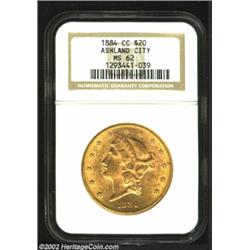 1884-CC $20 MS62 NGC. Winter 1-A, the only known dies. This is a Condition Census 1884-CC Double Eag