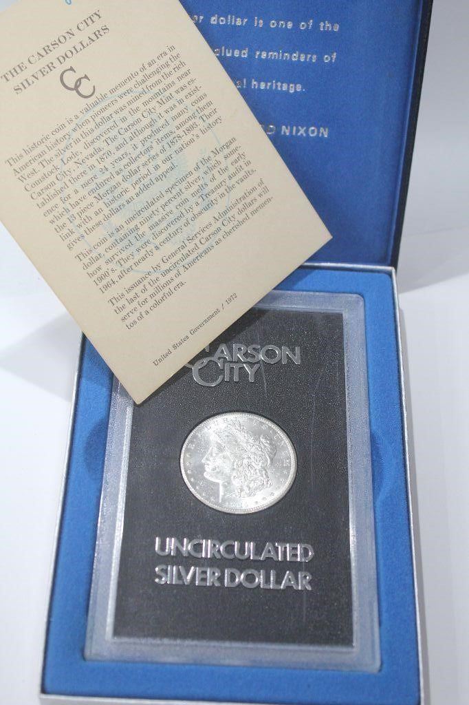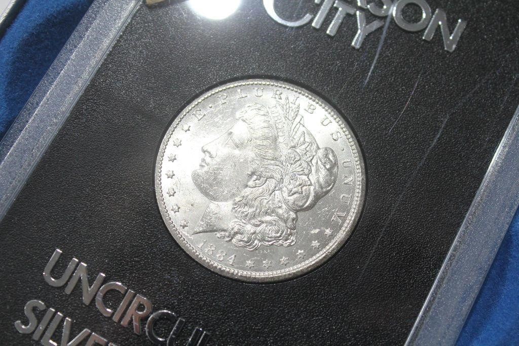 A 1884 CC Choice BU GSA Morgan Silver Dollar with Original Government Box and COA. A nicer example of this popular Carson City Issue.