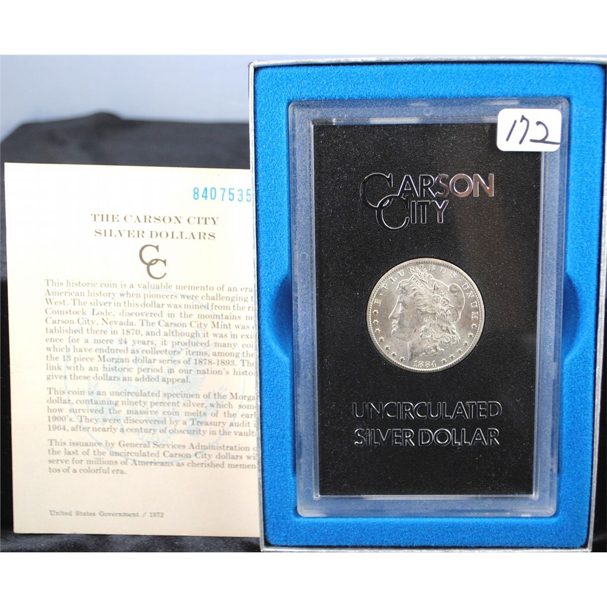 1884-CC GSA BLACK BOX MORGAN DOLLAR WITH ORIGINAL BOX AND CERTIFICATE OF AUTHENTICITY