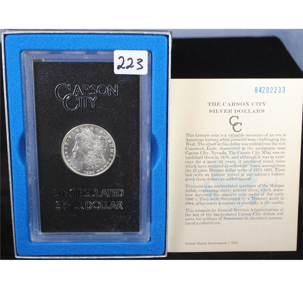 1884-CC GSA BLACK BOX MORGAN DOLLAR WITH THE ORIGINAL BOX AND CERTIFICATE OF AUTHENTICITY
