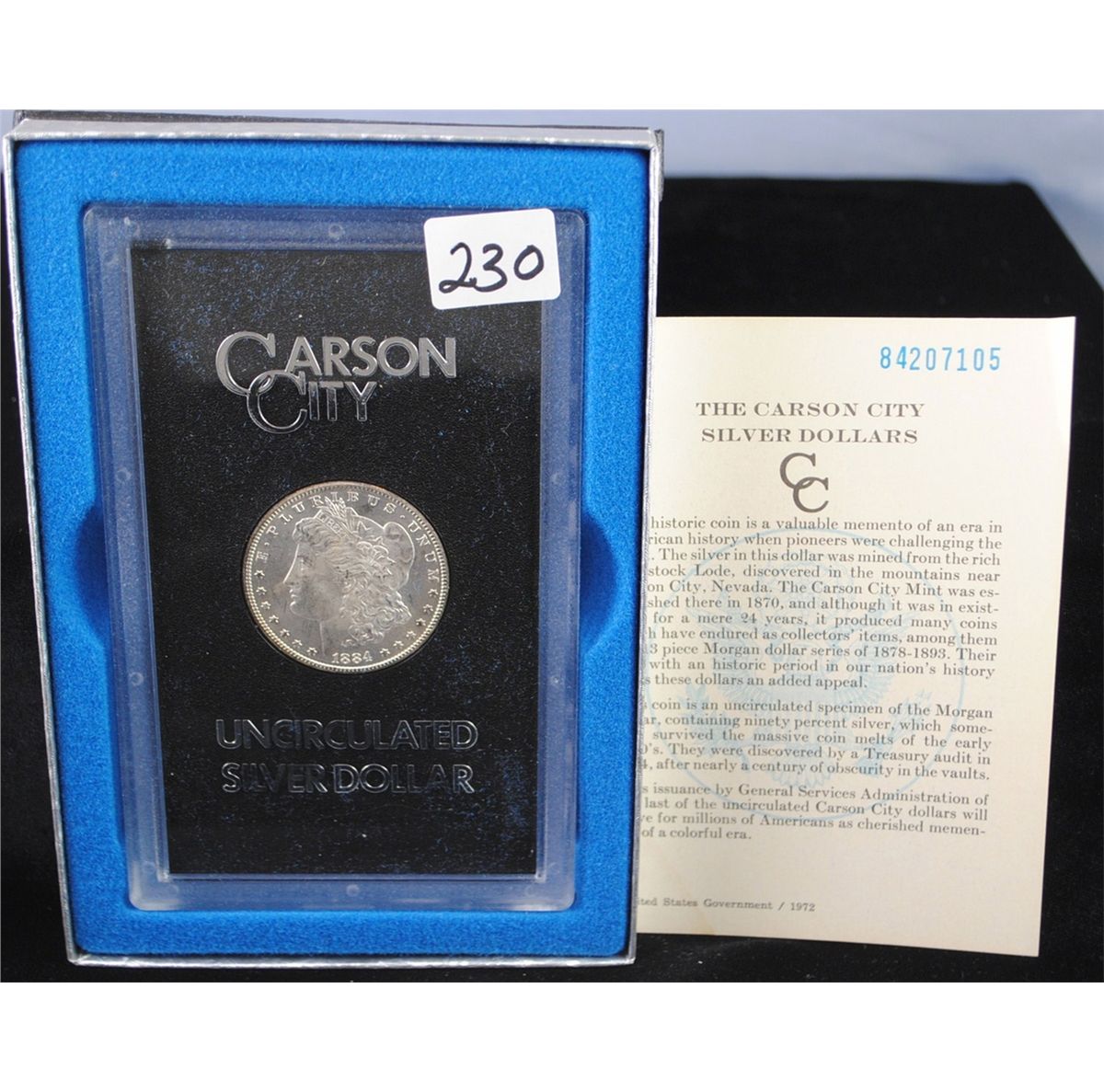 1884-CC GSA BLACK BOX MORGAN DOLLAR WITH THE ORIGINAL BOX AND CERTIFICATE OF AUTHENTICITY