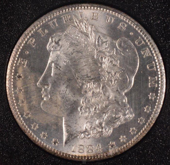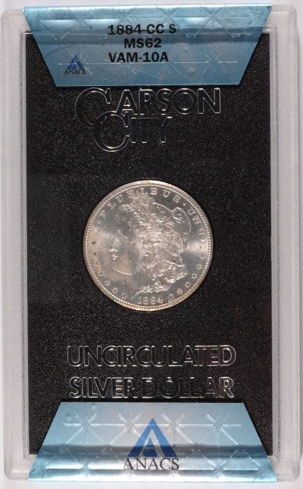 1884-CC GSA MORGAN SILVER DOLLAR, ANACS MS-62, NO BOX OR COA
