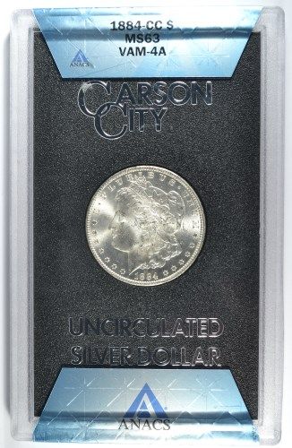1884-CC GSA MORGAN SILVER DOLLAR, ANACS MS-63, NO BOX OR CERTIFICATE