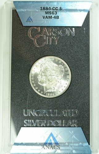 1884-CC GSA MORGAN SILVER DOLLAR, ANACS MS-63 NO BOX OR CERTIFICATE