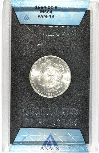 1884-CC GSA MORGAN SILVER DOLLAR, ANACS MS-64 NO BOX OR COA