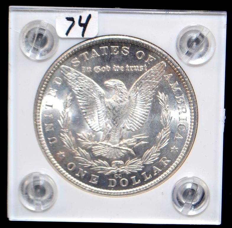 1884-CC MORGAN DOLLAR FROM SAFE DEPOSIT - SELLER GRADES @ GEM BRILLIANT UNCIRCULATED (CURRENT COIN WORLD TRENDS LISTS AN MS65 @ $525.00)