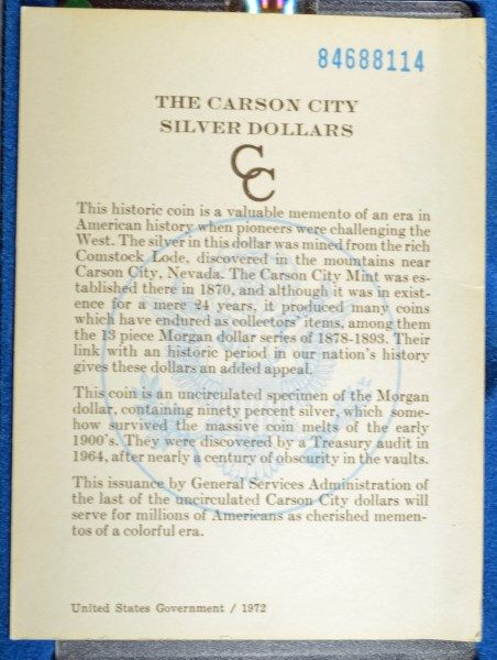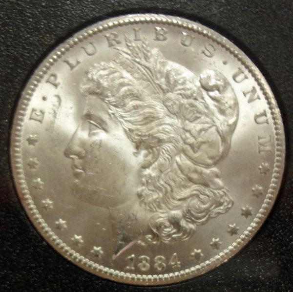 1884-CC MORGAN SILVER DOLLAR, GSA WITH ORIGINAL BOX AND COA, NGC MS-64