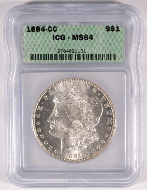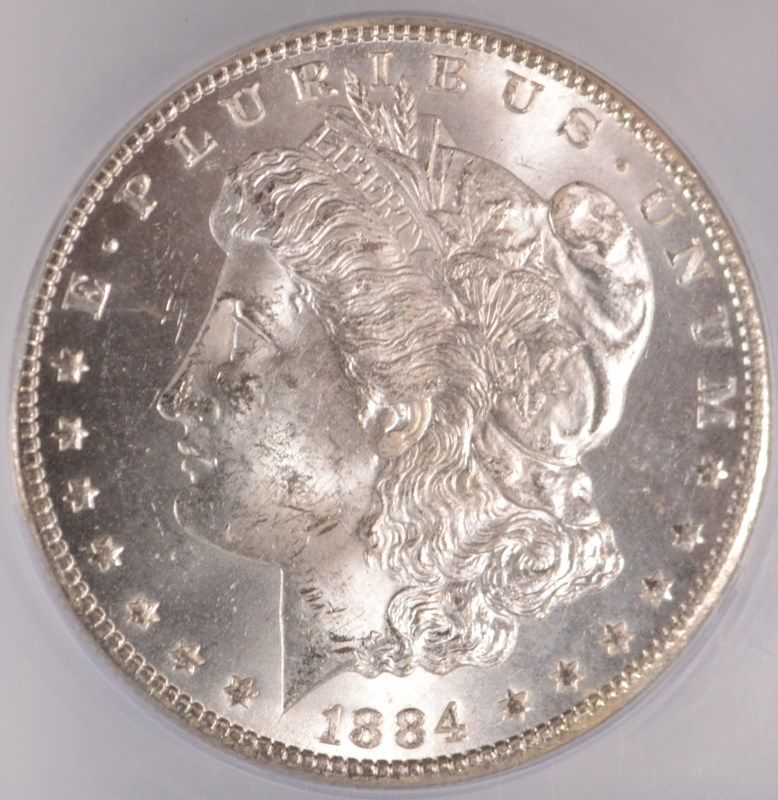 1884-CC MORGAN SILVER DOLLAR, ICG MS-64 BLAST WHITE