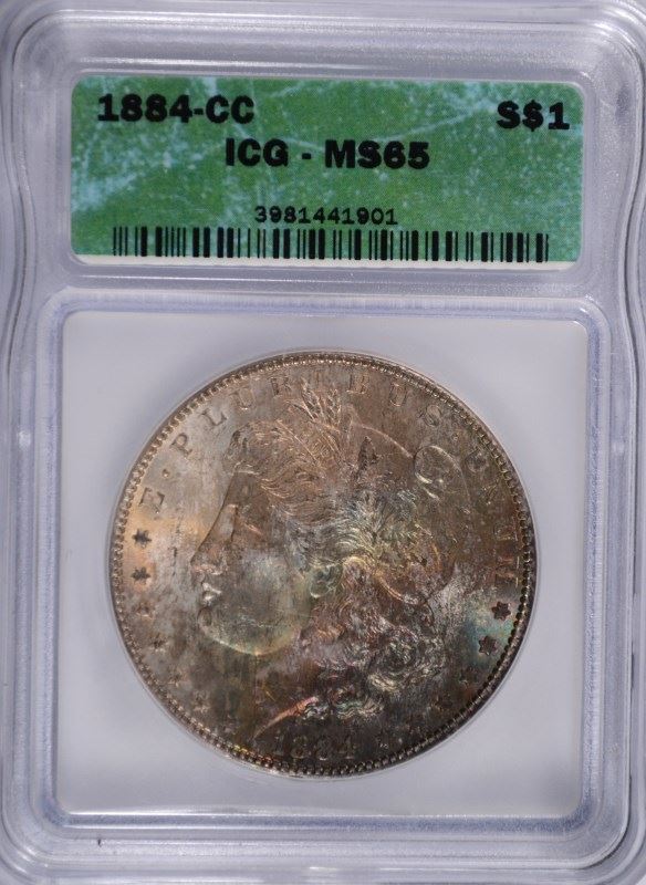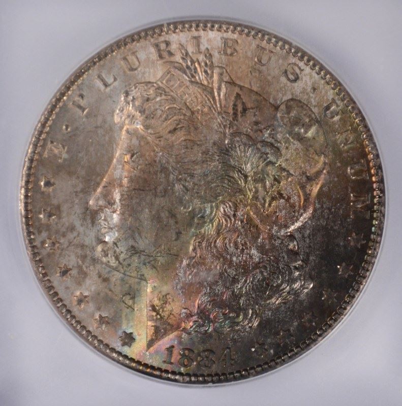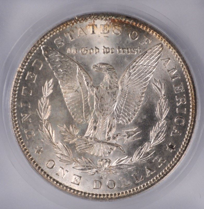 COLORS FROM LAYING AGAINST THE CANVAS BAG IT WAS IN FROM THE CARSON CITY MINT, ESTIMATE, $625.00 TO $700.00