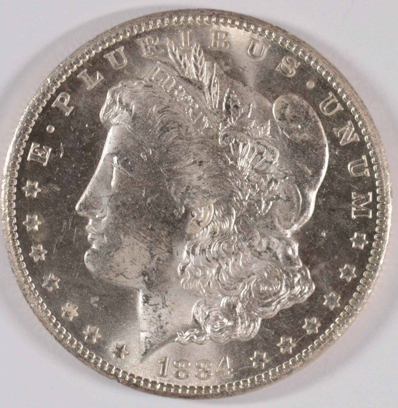 1884-CC MORGAN SILVER DOLLAR, MS-63+ BLAST WHITE!