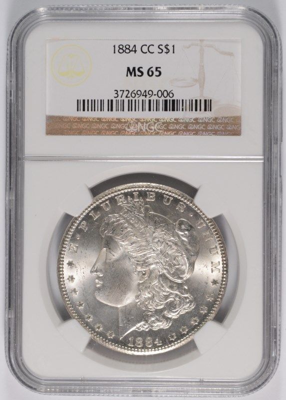 1884-CC MORGAN SILVER DOLLAR, NGC MS-65!   WHITE!