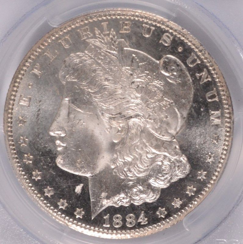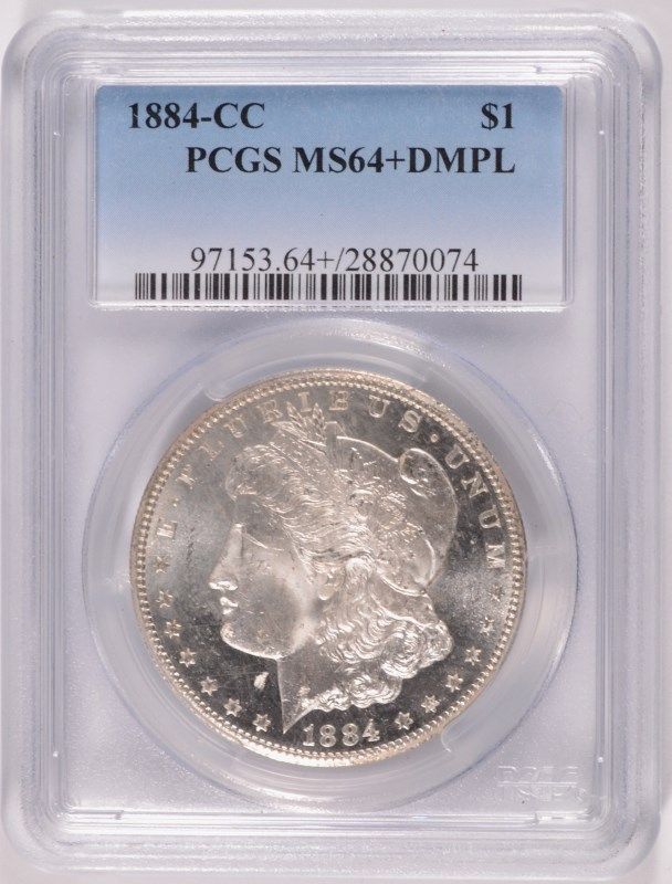 1884-CC MORGAN SILVER DOLLAR, PCGS MS-64+ DMPL