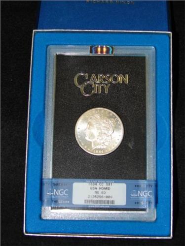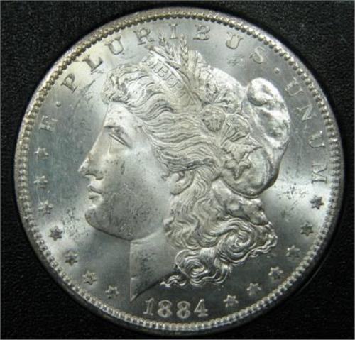 1884-CC MORGAN SILVER DOLLAR. Graded by NGC. MS 63. 2135296-009. In case and box.