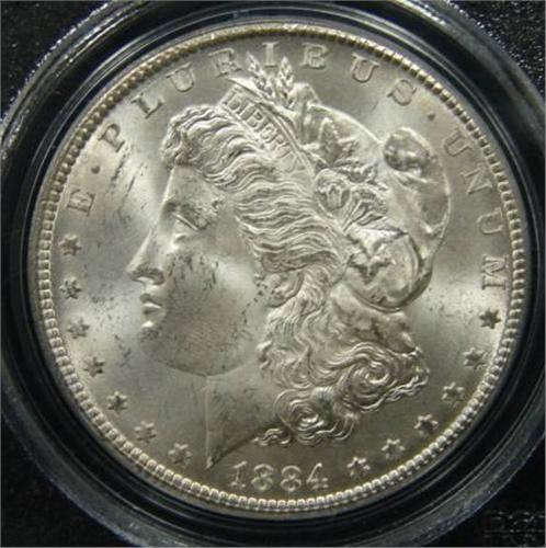 1884-CC MORGAN SILVER DOLLAR. Graded by PCGS. MS 64